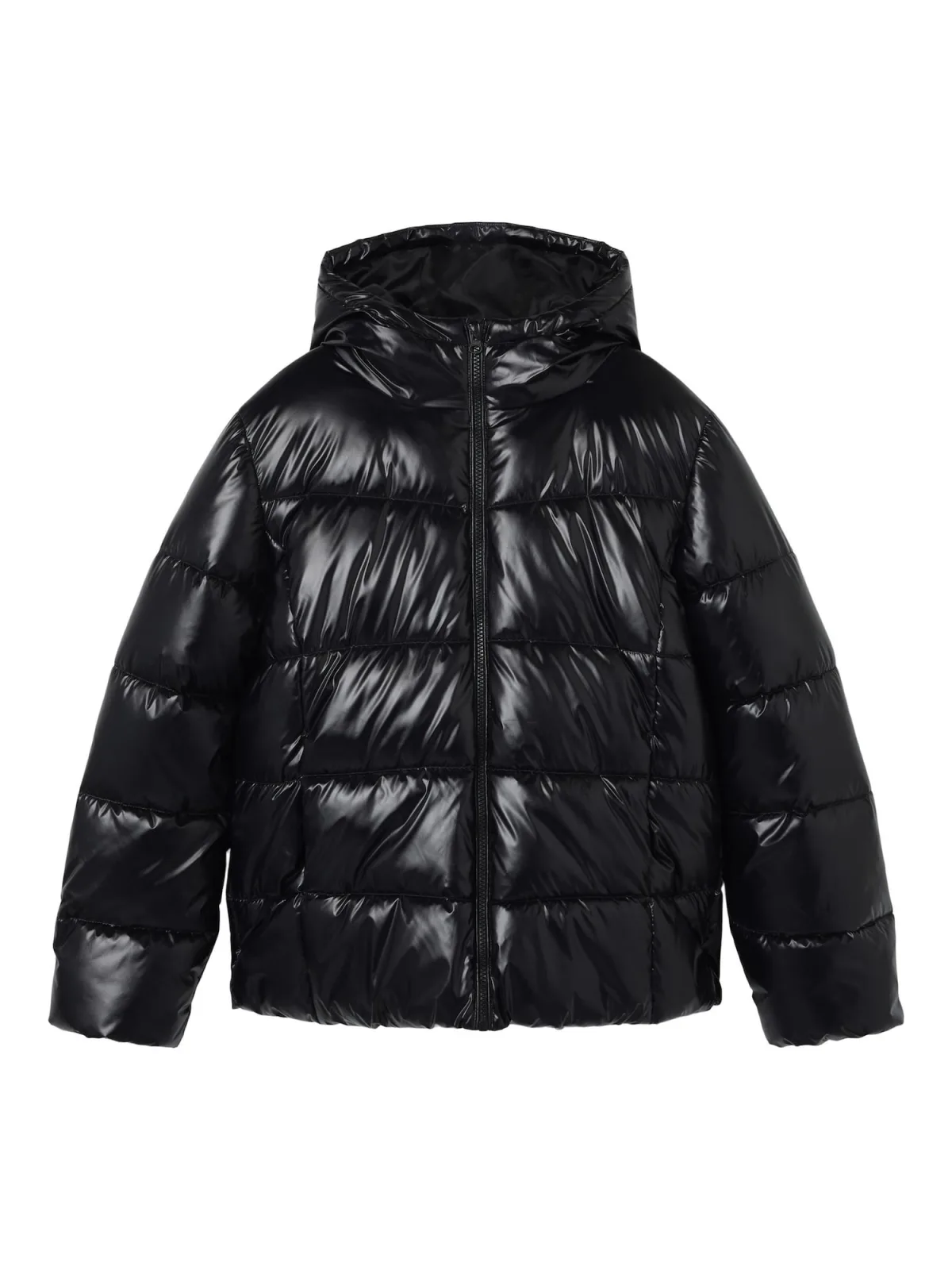 Design: Rechte zoom, Capuchon met opstaande kraag, Zakken aan de zijkant; Type sluiting: Ritssluiting; Type jas: Gewatteerde jas; Voering: Warm gevoerd; Motief: Effen; Extra's: Glanzend, Stiksels; Pasvorm: Losse pasvorm
