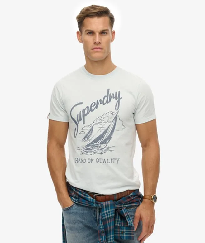 Relaxed pasvorm - de klassieke Superdry pasvorm. Niet te smal, niet te ruim, precies goed. Kies je normale maat Geribbelde ronde hals Opgedrukte grafische print Kenmerkend label op de mouw Maak een statement dit seizoen met onze Lo-fi Dockside T-shirt. Gemaakt met uitstekende kwaliteit is dit shirt de perfecte manier om je stijl te tonen en moeiteloos diepte te creëren in elke outfit.