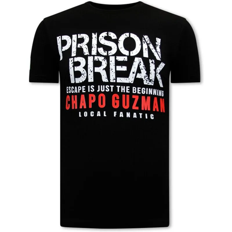 Chapo Guzman Prison Break Heren T-shirt - Zwart - Specificaties:- Chapo Guzman Prison Break Heren T-shirt - Artikel code: LF-2612- Kleur: Zie Afbeelding - Zwart- Seizoen: Voorjaar / Najaar- Kraag: Ronde Kraag- Patroon: Print- Kwalitatief Hoogwaardige Afwerking- Materiaal: 93% Katoen en 7% Lycra- Pasvorm: Getailleerd Italiaans- Wasvoorschrift: Handwas, Binnenste buiten wassen (Niet in de droger)- Beschikbare maten: S - M - L - XL - XXLLocal Fanatic is een jong merk voor modebewuste mannen die aandacht besteden aan kleding en uiterlijk met de Allure en Glamour. Kenmerkend van het merk zijn de zeefdruk- en digitaal prints die gegarandeerd staan voor kwaliteit van vooruitstrevende stoffen in Italiaanse pasvormen.