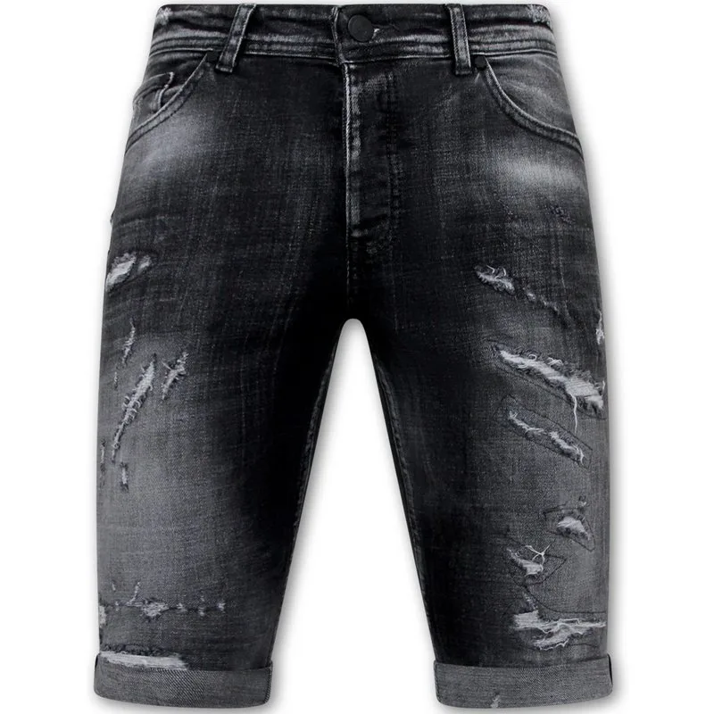 Destroyed Shorts with Paint Splatter Heren Slim Fit 1086 Zwart