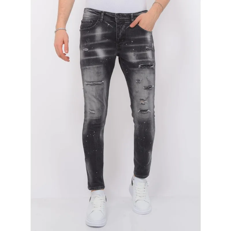 Distressed Jeans Stonewash Heren - Slim Fit -1087- Zwart - Specificaties:- Distressed Jeans Stonewash Heren- Slim Fit- Kleur: Blauw- Artikelcode: LF-DNM-1087- Lengte: Standaard 34- Pasvorm: Slim Fit / Stretch- Patroon: Stonewashed / Ripped / Paint- Sluiting: Knopen- Materiaal: 98% Coton, 2% Spandex- Weefsel: Denimweefsel - Zakken: 2 Voorzakken, 2 Achterzakken- Wasvoorschrift: Machinewas 30 graden (Niet in de droger)- Beschikbare maten: 29 - 30 - 31 - 32 - 33 - 34 - 36 - 38