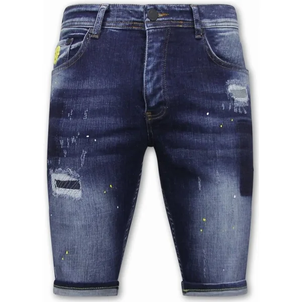 Korte Heren Broek met Verfspatten - 1051 - Blauw - Specificaties:- Korte Heren Broek met Verfspatten- Artikelcode:LF2-DNM-1051- Pasvorm: Slim Fit / Stretch- Sluiting: Knopen- Patroon: Ripped / Paint drops- Materiaal: 98% Coton, 2% 2% Spandex- Weefsel: Denimweefsel - Zakken: 2 Voorzakken en 2 Achterzakken- Wasvoorschrift: Machinewas 30 graden (Niet in de droger)- Beschikbare maten: 29 - 30 - 31 - 32 - 33 - 34 -36 -38