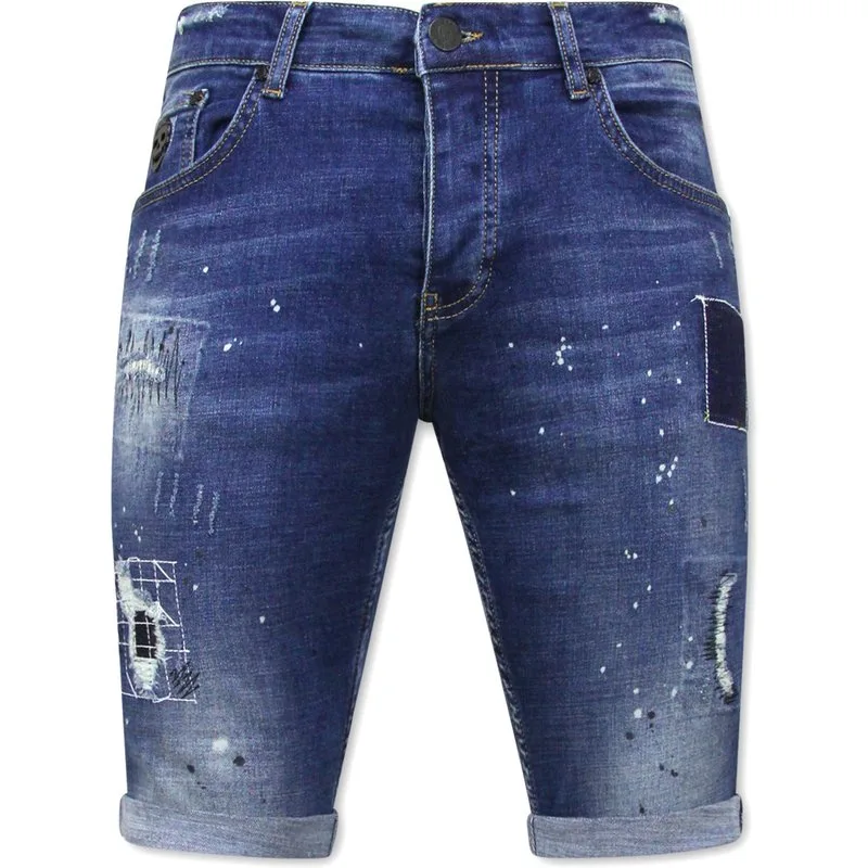 | Prijsgeschiedenis voor Heren Korte Jeans met Verfspatten Stretch -1035-SH- Blauw | |
