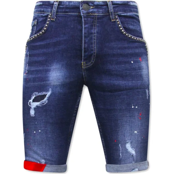 Korte Spijkerbroek Heren Gaten -1025-SH- Blauw - Specificaties:- Korte Spijkerbroek Heren Gaten - Artikelcode:LF-SHRT-1025- Pasvorm: Slim Fit / Stretch- Sluiting: Knopen- Patroon: Ripped / Paint drops- Materiaal: 98% Coton, 2% 2% Spandex- Weefsel: Denimweefsel - Zakken: 2 Voorzakken en 2 Achterzakken- Wasvoorschrift: Machinewas 30 graden (Niet in de droger)- Beschikbare maten: 29 - 30 - 31 - 32 - 33 - 34 -36 -38