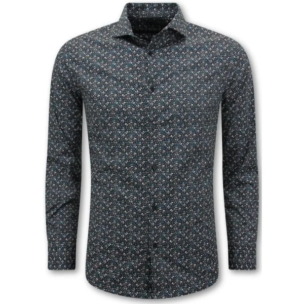 Blouse Heren Lange Mouw - Overhemd Heren Volwassenen - Zwart