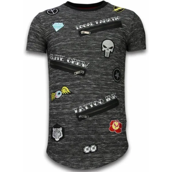 Local Fanatic Longfit asymmetric embroidery t-shirt patches Prijzen