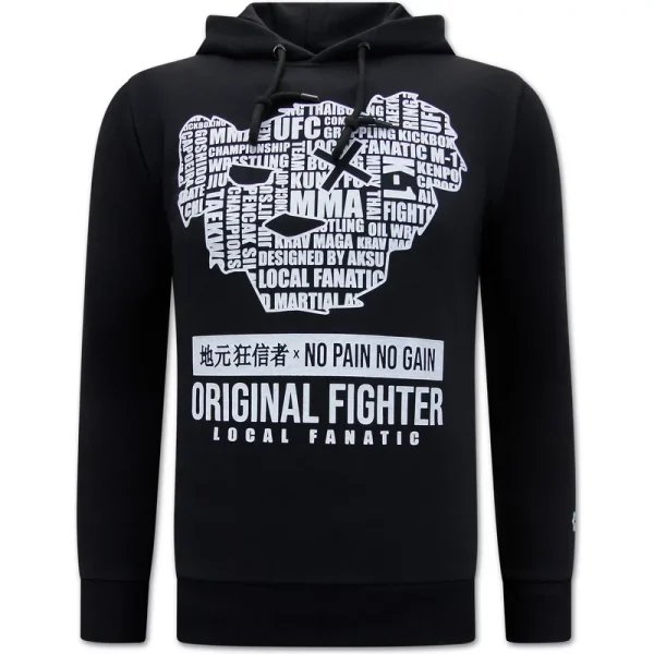 MMA Fighter Heren Hoodie - Zwart - Specificaties:- MMA Fighter Heren Hoodie - Artikel code: LF-2599- Kleur: Zie Afbeelding - Zwart- Seizoen: Voorjaar / Najaar- Mouwen: Lange Mouw- Patroon: Print- Kwalitatief: Hoogwaardige Afwerking- Materiaal: 84% Katoen en 16% Polyester- Weefsel: Geweven- Pasvorm: Getailleerd Italiaans- Wasvoorschrift: Handwas, Binnenste buiten wassen (Niet in de droger)- Beschikbare maten: S - M - L - XL - XXLLocal Fanatic is een jong merk voor modebewuste mannen die aandacht besteden aan kleding en uiterlijk met de Allure en Glamour.Kenmerkend van het merk zijn de zeefdruk- en digitaal prints die gegarandeerd staan voor kwaliteit van vooruitstrevende stoffen in Italiaanse pasvormen.