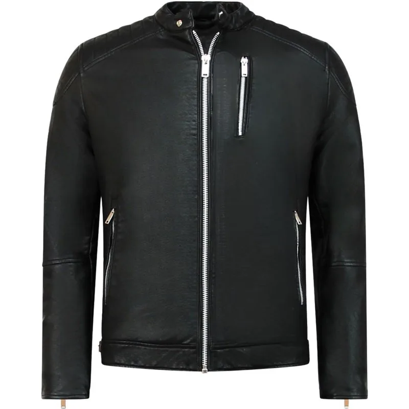 Nep leren jas heren - Motor Jack - Zwart - Specificaties:- Nep leren jas heren - Kleur: Zie afbeelding - Zwart- Artikelcode: ZMG-8091- Lengte: Kort- Pasvorm: Slim Fit- Sluiting: Rits- Materiaal: 100% Polyester- Zakken: 2 Jaszakken, 1 binnenzak- Seizoen: N.O.O.S.- Wasvoorschrift: Machinewas 30 graden- Beschikbare Maten: S - M - L - XL - XXL