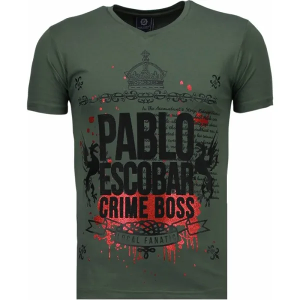 - Bij bol.com kun je Pablo Escobar Boss Rhinestone Tshirt Groen kopen voor slechts €39,99 , dat is 38% goedkoper dan bij To Be Dressed (€64,99).