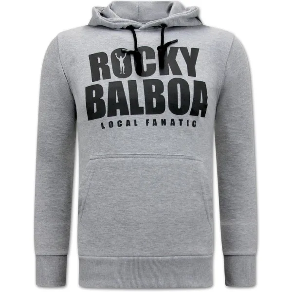 Rocky Balboa Heren Hoodie - Grijs - Specificaties:- Rocky Balboa Heren Hoodie- Artikel code: 11-6474- Kleur: Zie Afbeelding - Grijs- Seizoen: Voorjaar / Najaar- Kraag: Ronde Kraag- Mouwen: Lange Mouw- Patroon: Print- Kwalitatief: Hoogwaardige Afwerking- Materiaal: 84% Katoen en 16% Polyester- Weefsel: Geweven- Pasvorm: Getailleerd Italiaans- Wasvoorschrift: Handwas, Binnenste buiten wassen (Niet in de droger)- Beschikbare maten: S - M - L - XL - XXLLocal Fanatic is een jong merk voor modebewuste mannen die aandacht besteden aan kleding en uiterlijk met de Allure en Glamour.Kenmerkend van het merk zijn de zeefdruk- en digitaal prints die gegarandeerd staan voor kwaliteit van vooruitstrevende stoffen in Italiaanse pasvormen.