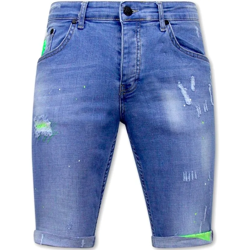 Skinny Korte Broek Heren met Verfspatten -1027-SH- Blauw - Specificaties:- Skinny Korte Broek Heren met Verfspatten- Artikelcode:LF-SHRT-1027- Pasvorm: Slim Fit / Stretch- Sluiting: Knopen- Patroon: Ripped / Paint drops- Materiaal: 98% Coton, 2% 2% Spandex- Weefsel: Denimweefsel - Zakken: 2 Voorzakken en 2 Achterzakken- Wasvoorschrift: Machinewas 30 graden (Niet in de droger)- Beschikbare maten: 29 - 30 - 31 - 32 - 33 - 34 -36 -38