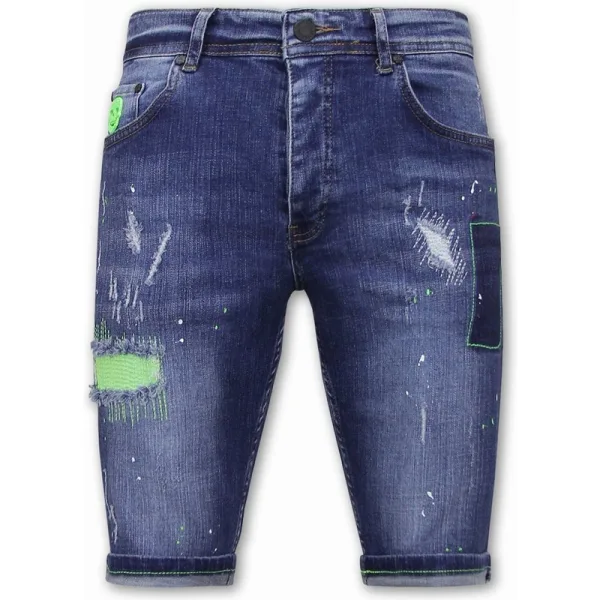 Exclusieve Slim fit Korte Broek Heren - 1044 - Blauw - Specificaties:- Slim fit Korte Broek Heren - Artikelcode:LF2-DNM-1044- Pasvorm: Slim Fit / Stretch- Sluiting: Knopen- Patroon: Ripped / Paint drops- Materiaal: 98% Coton, 2% 2% Spandex- Weefsel: Denimweefsel - Zakken: 2 Voorzakken en 2 Achterzakken- Wasvoorschrift: Machinewas 30 graden (Niet in de droger)- Beschikbare maten: 29 - 30 - 31 - 32 - 33 - 34 -36 -38