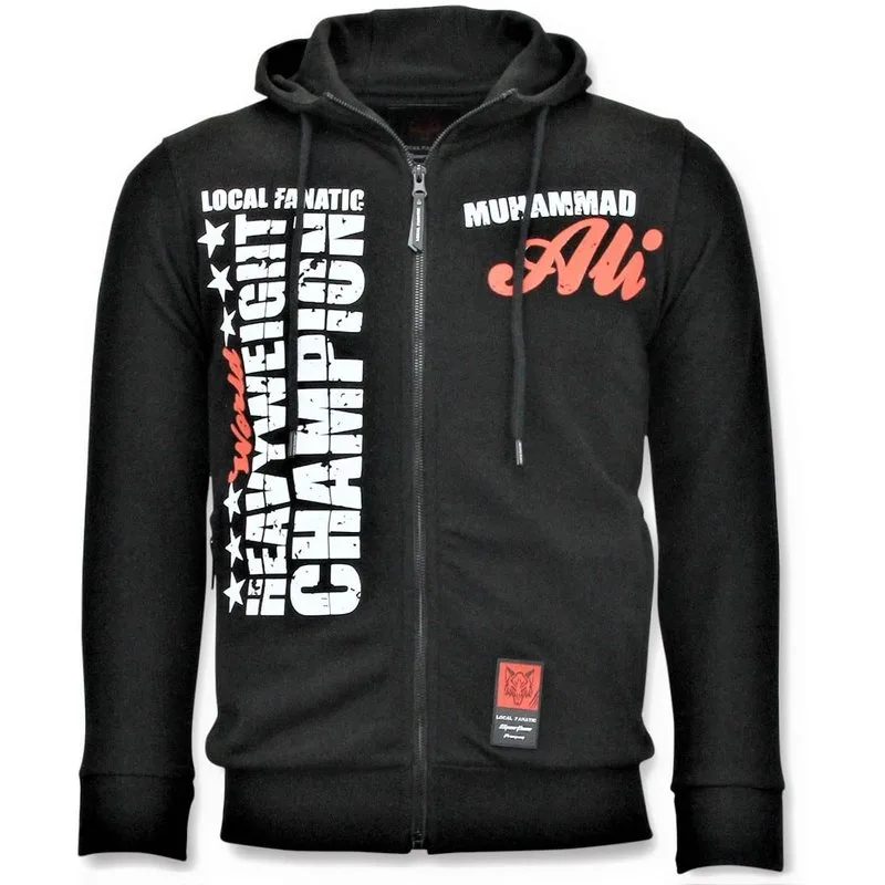 Exclusieve Sportvest Heren - Muhammad Ali Champion Print - Zwart - Specificaties:- Exclusieve Sportvest Heren - Muhammad Ali Champion Vest- Artikelcode:11-6243Z- Kleur: Zwart- Seizoen: Voorjaar / Najaar- Kraag: Ronde Kraag- Mouwen: Lange Mouw- Materiaal: 60% Katoen, 40% Polyester- Pasvorm: Regular Fit- Wasvoorschrift: Handwas, Binnenste buiten wassen (Niet in de droger)- Beschikbare maten: XS- S - M - L - XL Local Fanatic is een jong merk voor modebewuste mannen die aandacht besteden aan kleding en uiterlijk met de Allure en Glamour. Kenmerkend van het merk zijn de zeefdruk- en digitaal prints die gegarandeerd staan voor kwaliteit van vooruitstrevende stoffen in Italiaanse pasvormen.
