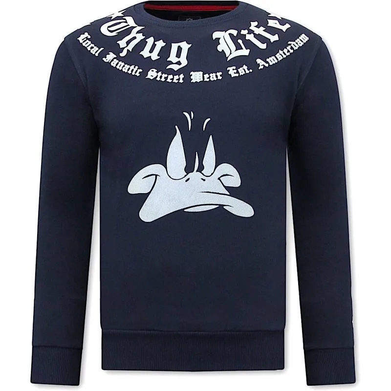 Heren Sweater met Print - Thug Life - Blauw - Specificaties:- Heren Sweater met Print - Thug Life- Artikel code: 11-6430- Kleur: Zie Afbeelding - Blauw- Seizoen: Voorjaar / Najaar- Kraag: Ronde Kraag- Mouwen: Lange Mouw- Patroon: Print- Kwalitatief: Hoogwaardige Afwerking- Materiaal: 84% Katoen en 16% Polyester- Weefsel: Geweven- Pasvorm: Getailleerd Italiaans- Wasvoorschrift: Handwas, Binnenste buiten wassen (Niet in de droger)- Beschikbare maten: S - M - L - XL - XXLLocal Fanatic is een jong merk voor modebewuste mannen die aandacht besteden aan kleding en uiterlijk met de Allure en Glamour.Kenmerkend van het merk zijn de zeefdruk- en digitaal prints die gegarandeerd staan voor kwaliteit van vooruitstrevende stoffen in Italiaanse pasvormen.