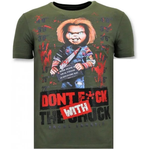 Stoere T-shirt Mannen - Bloody Chucky Angry - Groen - Specificaties:- Stoere T-shirt Mannen- Bloody Chucky Angry- Artikel : 11-6388G- Kleur: Zie Afbeelding- Seizoen: Voorjaar / Najaar- Kraag: Ronde Kraag- Patroon: Rhinestones, Borduur en Glitterdruk- Kwalitatief Hoogwaardige Afwerking- Materiaal: 93% Katoen en 7% Lycra- Pasvorm: Getailleerd Italiaans- Wasvoorschrift: Handwas, Binnenste buiten wassen (Niet in de droger)- Beschikbare maten: S - M - L - XL - XXLLocal Fanatic is een jong merk voor modebewuste mannen die aandacht besteden aan kleding en uiterlijk met de Allure en Glamour. Kenmerkend van het merk zijn de zeefdruk- en digitaal prints die gegarandeerd staan voor kwaliteit van vooruitstrevende stoffen in Italiaanse pasvormen.