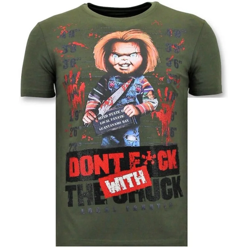 Stoere T-shirt Mannen - Bloody Chucky Angry - Groen - Specificaties:- Stoere T-shirt Mannen- Bloody Chucky Angry- Artikel : 11-6388G- Kleur: Zie Afbeelding- Seizoen: Voorjaar / Najaar- Kraag: Ronde Kraag- Patroon: Rhinestones, Borduur en Glitterdruk- Kwalitatief Hoogwaardige Afwerking- Materiaal: 93% Katoen en 7% Lycra- Pasvorm: Getailleerd Italiaans- Wasvoorschrift: Handwas, Binnenste buiten wassen (Niet in de droger)- Beschikbare maten: S - M - L - XL - XXLLocal Fanatic is een jong merk voor modebewuste mannen die aandacht besteden aan kleding en uiterlijk met de Allure en Glamour. Kenmerkend van het merk zijn de zeefdruk- en digitaal prints die gegarandeerd staan voor kwaliteit van vooruitstrevende stoffen in Italiaanse pasvormen.