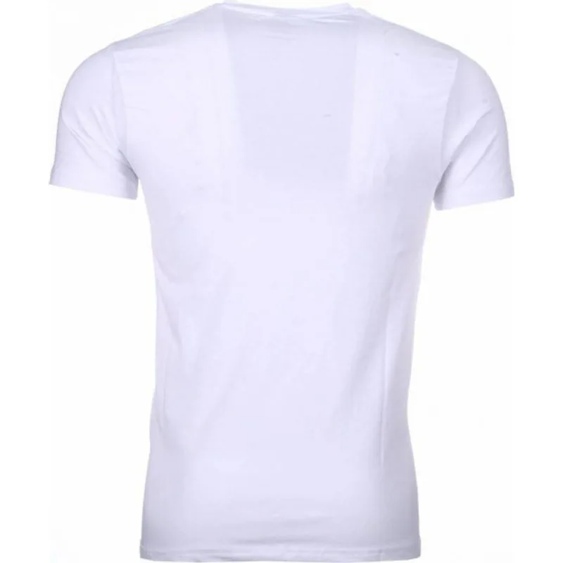 Exclusieve T-shirt met diverse specificaties. Dit T-shirt wordt gemaakt van een zeer hoogwaardige kwaliteit katoen. Ze hebben een uitstekende afwerking en pasvorm. - Specificaties: - Kleur: Zie Afbeelding - Seizoen: Voorjaar / Najaar - Kraag: Ronde hals - Mouwen: Korte Mouw - Patroon: Bedrukt - Kwalitatief Hoogwaardige Afwerking - Materiaal: 93% Katoen en 7% Polyester - Weefsel: Dun geweven - Pasvorm: Getailleerd Italiaans - Wasvoorschrift: Machinewas 30 graden, Binnenste buiten wassen (Niet in de droger) - Beschikbare maten: XS - S - M - L - XL - XXL