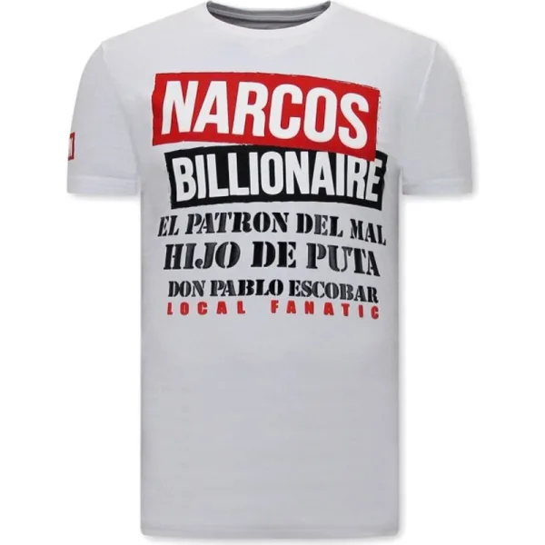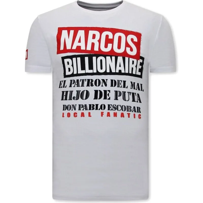 Mannen t shirt met Print - Narcos - Wit - Specificaties:- Mannen t shirt met Print - Narcos- Artikel code: 11-6485- Kleur: Zie Afbeelding - Wit- Seizoen: Voorjaar / Najaar- Kraag: Ronde Kraag- Patroon: Print- Kwalitatief Hoogwaardige Afwerking- Materiaal: 93% Katoen en 7% Lycra- Pasvorm: Getailleerd Italiaans- Wasvoorschrift: Handwas, Binnenste buiten wassen (Niet in de droger)- Beschikbare maten: S - M - L - XL - XXLLocal Fanatic is een jong merk voor modebewuste mannen die aandacht besteden aan kleding en uiterlijk met de Allure en Glamour. Kenmerkend van het merk zijn de zeefdruk- en digitaal prints die gegarandeerd staan voor kwaliteit van vooruitstrevende stoffen in Italiaanse pasvormen.