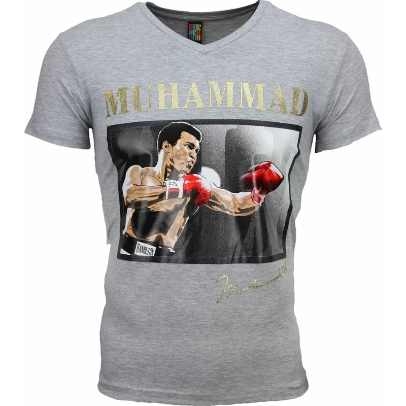 Exclusieve T-shirt met Muhammad Ali Print. Dit T-shirt wordt gemaakt van een zeer hoogwaardige kwaliteit katoen. Ze hebben een uitstekende afwerking en pasvorm. - Specificaties: - Kleur: Zie Afbeelding - Seizoen: Voorjaar / Najaar - Kraag: Ronde hals - Mouwen: Korte Mouw - Patroon: Bedrukt - Kwalitatief Hoogwaardige Afwerking - Materiaal: 93% Katoen en 7% Polyester - Weefsel: Dun geweven - Pasvorm: Getailleerd Italiaans - Wasvoorschrift: Machinewas 30 graden, Binnenste buiten wassen (Niet in de droger) - Beschikbare maten: XS - S - M - L - XL - XXL