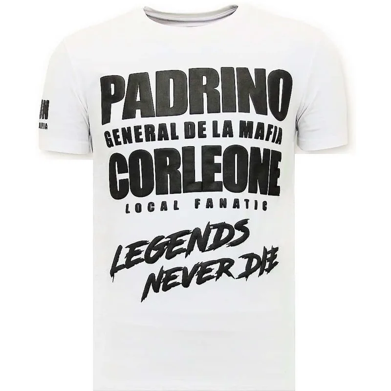 Exclusieve T-shirt Heren - Padrino Corleone - Wit - Specificaties:- Exclusieve T-shirt Heren- Padrino Corleone- Artikel : 11-6489W- Kleur: Zie Afbeelding- Seizoen: Voorjaar / Najaar- Kraag: Ronde Kraag- Patroon: Print- Kwalitatief Hoogwaardige Afwerking- Materiaal: 93% Katoen en 7% Lycra- Pasvorm: Getailleerd Italiaans- Wasvoorschrift: Handwas, Binnenste buiten wassen (Niet in de droger)- Beschikbare maten: S - M - L - XL - XXLLocal Fanatic is een jong merk voor modebewuste mannen die aandacht besteden aan kleding en uiterlijk met de Allure en Glamour. Kenmerkend van het merk zijn de zeefdruk- en digitaal prints die gegarandeerd staan voor kwaliteit van vooruitstrevende stoffen in Italiaanse pasvormen.