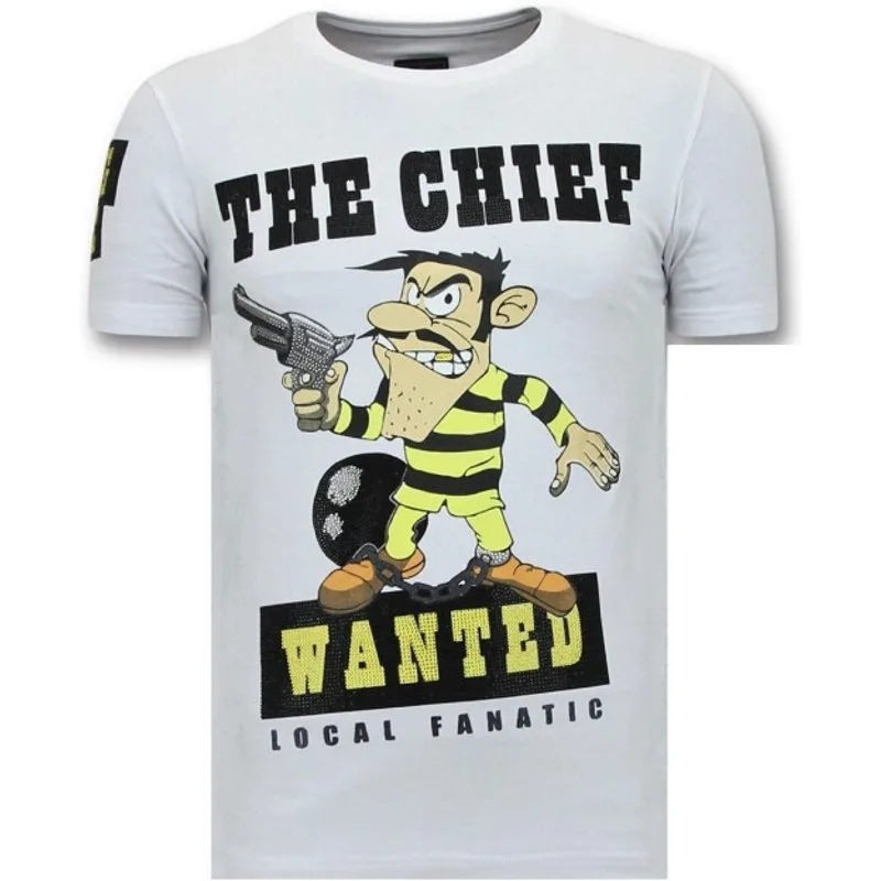 Exclusieve T-Shirt Mannen Print - The Chief Wanted - Wit - Specificaties:- Funny T-Shirt Mannen Print- The Chief Wanted- Artikel code: 11-6367W- Kleur: Zie Afbeelding- Seizoen: Voorjaar / Najaar- Kraag: Ronde Kraag- Patroon: Rhinestones, Borduur en Glitterdruk- Kwalitatief Hoogwaardige Afwerking- Materiaal: 93% Katoen en 7% Lycra- Pasvorm: Getailleerd Italiaans- Wasvoorschrift: Handwas, Binnenste buiten wassen (Niet in de droger)- Beschikbare maten: S - M - L - XL - XXLLocal Fanatic is een jong merk voor modebewuste mannen die aandacht besteden aan kleding en uiterlijk met de Allure en Glamour. Kenmerkend van het merk zijn de zeefdruk- en digitaal prints die gegarandeerd staan voor kwaliteit van vooruitstrevende stoffen in Italiaanse pasvormen.