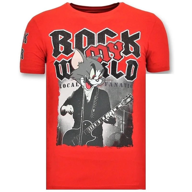 Exclusieve T-Shirt Mannen - Rock My World Cat - Rood - Specificaties:- Exclusieve T-Shirt Mannen- Rock My World Cat- Artikel : 11-6366R- Kleur: Zie Afbeelding- Seizoen: Voorjaar / Najaar- Kraag: Ronde Kraag- Patroon: Rhinestones, Borduur en Glitterdruk- Kwalitatief Hoogwaardige Afwerking- Materiaal: 93% Katoen en 7% Lycra- Pasvorm: Getailleerd Italiaans- Wasvoorschrift: Handwas, Binnenste buiten wassen (Niet in de droger)- Beschikbare maten: S - M - L - XL - XXLLocal Fanatic is een jong merk voor modebewuste mannen die aandacht besteden aan kleding en uiterlijk met de Allure en Glamour.Kenmerkend van het merk zijn de zeefdruk- en digitaal prints die gegarandeerd staan voor kwaliteit van vooruitstrevende stoffen in Italiaanse pasvormen.