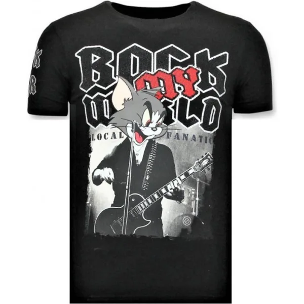 Funny T-Shirt Mannen- Rock My World Cat - Zwart - Specificaties:- Stoere T-Shirt Mannen- Rock My World Cat- Artikel code: 11-6366Z- Kleur: Zie Afbeelding- Seizoen: Voorjaar / Najaar- Kraag: Ronde Kraag- Patroon: Rhinestones, Borduur en Glitterdruk- Kwalitatief Hoogwaardige Afwerking- Materiaal: 93% Katoen en 7% Lycra- Pasvorm: Getailleerd Italiaans- Wasvoorschrift: Handwas, Binnenste buiten wassen (Niet in de droger)- Beschikbare maten: S - M - L - XL - XXLLocal Fanatic is een jong merk voor modebewuste mannen die aandacht besteden aan kleding en uiterlijk met de Allure en Glamour.Kenmerkend van het merk zijn de zeefdruk- en digitaal prints die gegarandeerd staan voor kwaliteit van vooruitstrevende stoffen in Italiaanse pasvormen.