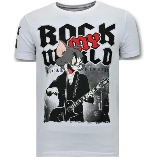 Stoere T-Shirt Heren - Rock My World Cat - Wit - Specificaties:- Stoere T-Shirt Heren- Rock My World Cat- Artikel : 11-6366W- Kleur: Zie Afbeelding- Seizoen: Voorjaar / Najaar- Kraag: Ronde Kraag- Patroon: Rhinestones, Borduur en Glitterdruk- Kwalitatief Hoogwaardige Afwerking- Materiaal: 93% Katoen en 7% Lycra- Pasvorm: Getailleerd Italiaans- Wasvoorschrift: Handwas, Binnenste buiten wassen (Niet in de droger)- Beschikbare maten: S - M - L - XL - XXLLocal Fanatic is een jong merk voor modebewuste mannen die aandacht besteden aan kleding en uiterlijk met de Allure en Glamour. Kenmerkend van het merk zijn de zeefdruk- en digitaal prints die gegarandeerd staan voor kwaliteit van vooruitstrevende stoffen in Italiaanse pasvormen.