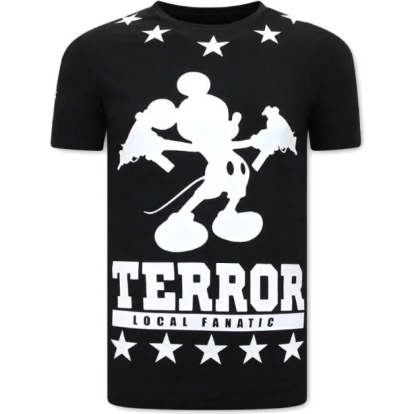 Exclusief Mannen T-shirt - Terror Mouse - Zwart - Specificaties:- Exclusief Mannen T-shirt - Terror Mouse- Artikel code: 11-6449- Kleur: Zie Afbeelding - Zwart- Seizoen: Voorjaar / Najaar- Kraag: Ronde Kraag- Patroon: Print- Kwalitatief Hoogwaardige Afwerking- Materiaal: 93% Katoen en 7% Lycra- Pasvorm: Getailleerd Italiaans- Wasvoorschrift: Handwas, Binnenste buiten wassen (Niet in de droger)- Beschikbare maten: S - M - L - XL - XXLLocal Fanatic is een jong merk voor modebewuste mannen die aandacht besteden aan kleding en uiterlijk met de Allure en Glamour. Kenmerkend van het merk zijn de zeefdruk- en digitaal prints die gegarandeerd staan voor kwaliteit van vooruitstrevende stoffen in Italiaanse pasvormen.