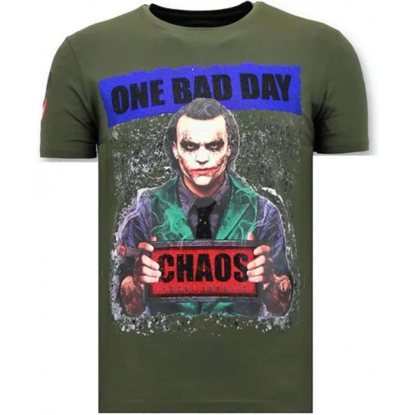 Heren T-shirt Exclusief - The Joker Man - Groen - Specificaties:- Heren T-shirt Exclusief - The Joker Man- Code: 11-6363G- Kleur: Zie Afbeelding- Seizoen: Voorjaar / Najaar- Kraag: Ronde Kraag- Patroon: Rhinestones, Print en Glitterdruk- Kwalitatief Hoogwaardige Afwerking- Materiaal: 93% Katoen en 7% Lycra- Pasvorm: Getailleerd Italiaans- Wasvoorschrift: Handwas, Binnenste buiten wassen (Niet in de droger)- Beschikbare maten: S - M - L - XL - XXLLocal Fanatic is een jong merk voor modebewuste mannen die aandacht besteden aan kleding en uiterlijk met de Allure en Glamour. Kenmerkend van het merk zijn de zeefdruk- en digitaal prints die gegarandeerd staan voor kwaliteit van vooruitstrevende stoffen in Italiaanse pasvormen.