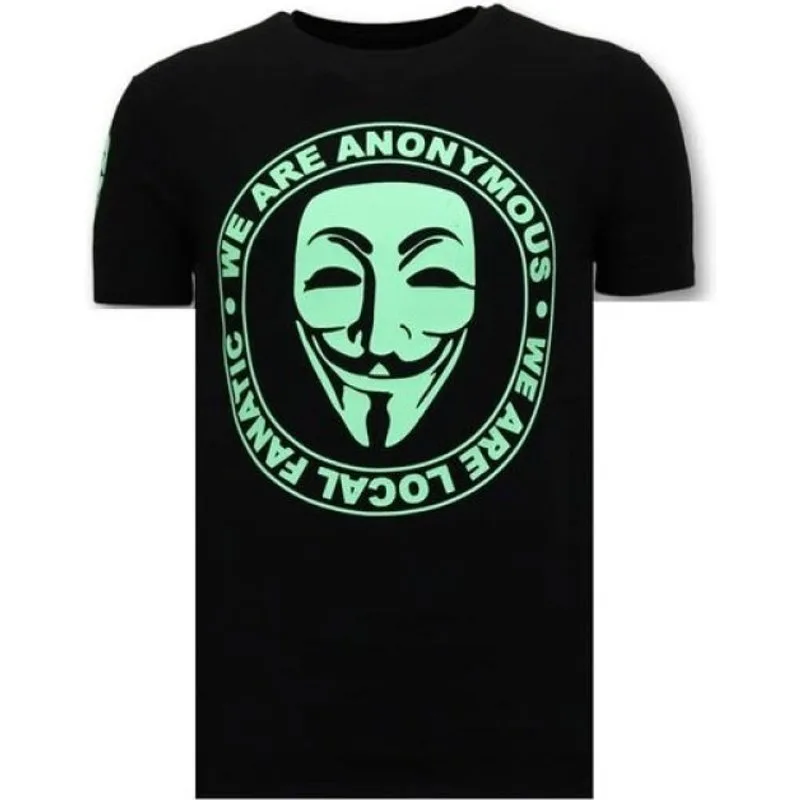Exclusief Mannen T-shirt - We Are Anonymous -Zwart - Specificaties:- Exclusief Mannen T-shirt- We Are Anonymous- Artikel : 11-6451Z- Kleur: Zie Afbeelding- Seizoen: Voorjaar / Najaar- Kraag: Ronde Kraag- Patroon: Print- Kwalitatief Hoogwaardige Afwerking- Materiaal: 93% Katoen en 7% Lycra- Pasvorm: Getailleerd Italiaans- Wasvoorschrift: Handwas, Binnenste buiten wassen (Niet in de droger)- Beschikbare maten: S - M - L - XL - XXLLocal Fanatic is een jong merk voor modebewuste mannen die aandacht besteden aan kleding en uiterlijk met de Allure en Glamour. Kenmerkend van het merk zijn de zeefdruk- en digitaal prints die gegarandeerd staan voor kwaliteit van vooruitstrevende stoffen in Italiaanse pasvormen.