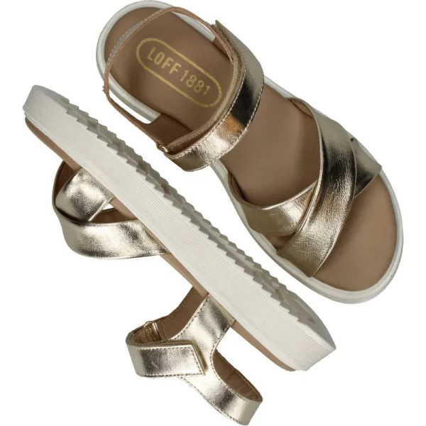 Deze LOFF 1881 Sandalen zijn voor Dames in de kleur Goud. De schoenen zijn gemaakt van het materiaal Metallic en de voering is gemaakt van . De voetbreedte van de schoenen is G - normaal.
