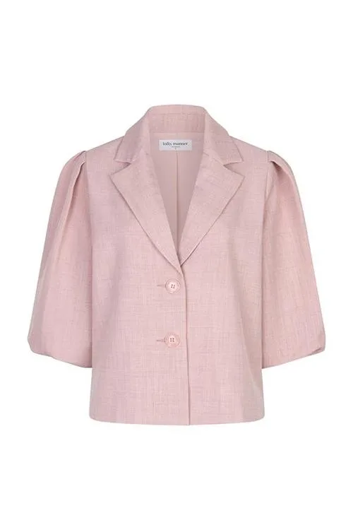 Deze blazer is gemaakt van een soepel vallende, geweven kwaliteit in een zachte pasteltint. De reverskraag en twee-knoopsluiting zorgen voor een cleane look, terwijl de 3/4 pofmouwen met geplooide schouders karakter geven. Het korte, recht vallende silhouet eindigt op de heup en heeft geen zichtbare zakken. Ton-sur-ton knopen en een subtiel Lofty Manner merklabel maken het ontwerp compleet. Dames, dit is een veelzijdig kledingstuk voor je garderobe.