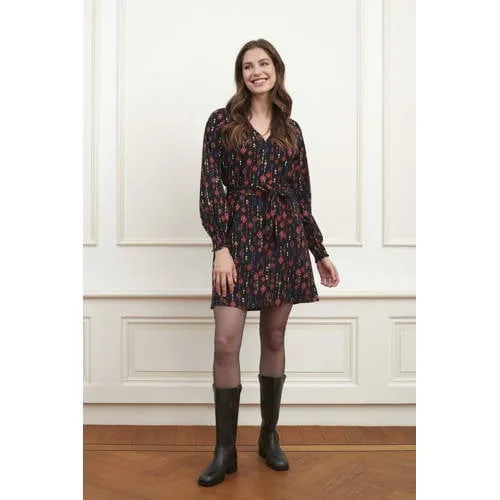 Lofty Manner blousejurk Sofie met all over print zwart/multi