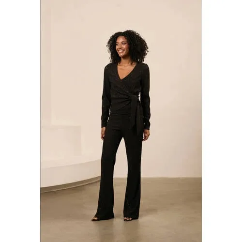 Deze Thalia broek van Lofty Manner heeft flared pijpen en een elastische tailleband. Dit model is lang en gemaakt van polyester met elastaan.