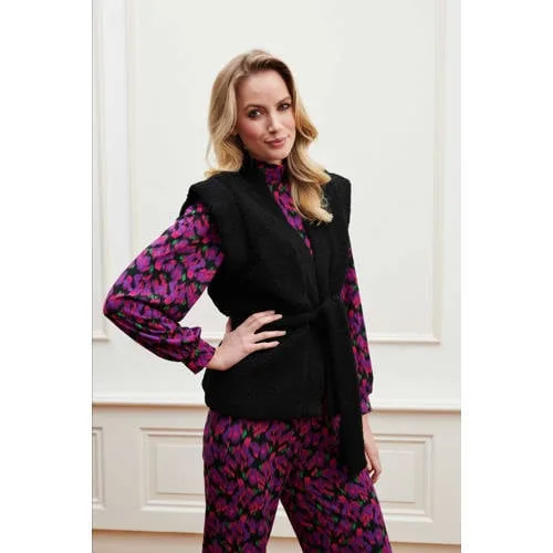 Dit gilet voor dames van Lofty Manner is gemaakt van teddy stof. Het mouwloze model heeft een V-hals.details van dit gilet:een ceintuur