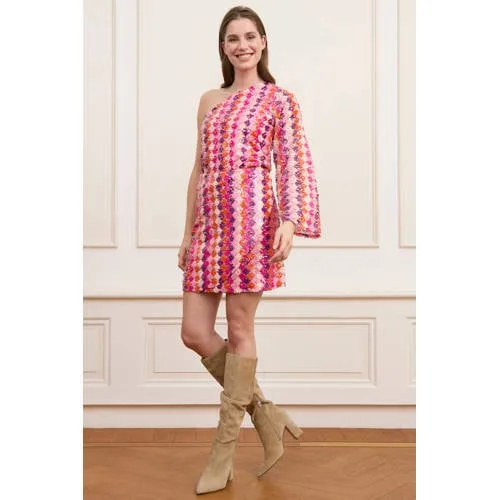 Val op in elke setting met de Lofty Manner ds top knitted, een Lofty Manner gebreide top. De top heeft een opvallende grafische print in roze, oranje en paars en is rijkelijk versierd met pailletten. De one shoulder halslijn en rechte lange mouwen geven een moderne, vrouwelijke look die meteen in het oog springt. Gemaakt van een soepele, glanzende stof die mooi om het lichaam valt en prettig aanvoelt op de huid.Opvallende details in één top Asymmetrische one shoulder halslijn voor een moderne, speelse uitstraling Lange rechte mouwen die zorgen voor een elegante balans met het blote schouderdetail Grafische print in roze, oranje en paars voor een kleurrijke, expressieve look Pailletten en glitterafwerking voor subtiele tot opvallende schittering bij elke beweging Co-ord set geschikt: combineer eenvoudig met een bijpassend item uit dezelfde collectie Valt in de 'Daily' collectie, ideaal voor zowel alledaagse momenten als een avond uitVan lunchdate tot avondje uitDeze top is geschikt voor verschillende momenten. Combineer met een aangesloten rok of bijpassende broek voor een co-ord look, of draag de top op een high waist jeans voor een meer casual outfit. Met hakken wordt het een uitgesproken partylook, met sneakers juist wat meer ontspannen. De pailletten en het asymmetrische model maken accessoires bijna overbodig.Lofty Manner: uitgesproken en draagbaarLofty Manner staat bekend om collecties die opvallen door kleur, prints en verfijnde details, maar altijd goed draagbaar blijven in het dagelijks leven. De items worden ontworpen met oog voor een vrouwelijke pasvorm en moderne trends. Zo creëer je met elk kledingstuk eenvoudig een look die net even anders is, zonder in te leveren op comfort.Een kleurrijke statementtop waarmee je elke dag iets bijzonderder maakt.