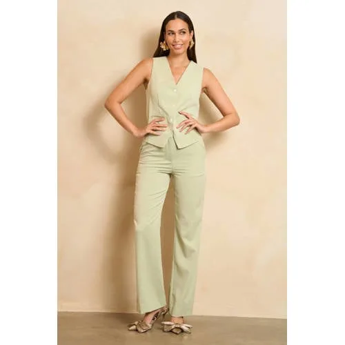 Voor een frisse, moderne look is deze mintgroene straight fit broek voor dames Salli van Lofty Manner een praktische basis in je garderobe. De broek heeft een regular waist en een rechte pijp die langs het been valt. De zachte mintgroene kleur sluit goed aan bij het nieuwe seizoen en geeft elke outfit direct een lichte, verzorgde uitstraling.Details die het verschil maken Rechte pasvorm met lange pijpen voor een rustige, moderne look Regular waist die aansluit in de taille Rits, haak- en knoopsluiting voor een nette afwerking Zakken voor en sierzakken achter voor een geklede uitstraling Soepel materiaal met viscose en elastaan dat licht meebeweegt Effen mintgroene kleur, goed te combineren met verschillende tops en blouses Onderdeel van de 'Daily' collectie, geschikt voor alledagGeschikt voor werk, weekend en alles daartussenDeze lange broek draag je net zo makkelijk naar kantoor als tijdens een lunchdate. Combineer met een witte blouse en loafers voor een zakelijke set of met een T-shirt en sneakers voor een meer casual stijl. De straight pasvorm zorgt ervoor dat de broek er zowel met hakken als met platte schoenen verzorgd uitziet.Lofty Manner als stijlvolle keuzeLofty Manner ontwerpt kleding met een eigentijdse uitstraling die goed past in het dagelijks leven. De collecties sluiten aan op de laatste trends en blijven tegelijk draagbaar voor verschillende gelegenheden. Met deze Salli broek kies je voor een item dat je eenvoudig combineert met andere kledingstukken uit je kast.Een mintgroene basis waarmee je eenvoudig verschillende looks samenstelt.