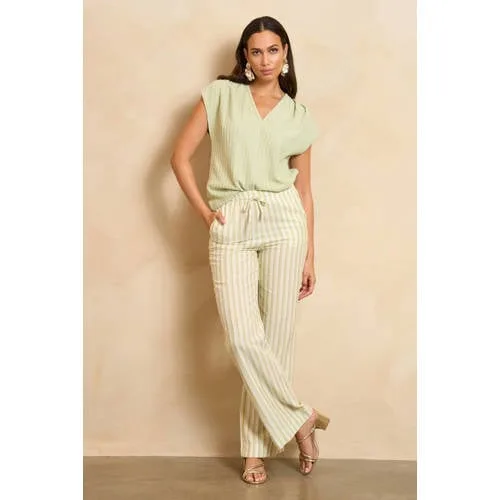 Fris, licht en makkelijk te combineren, dat is deze mintgroene top voor dames van Lofty Manner. Model Elian heeft een vrouwelijke V-hals en korte, rechte mouwen, waardoor het een fijne basic is voor elke dag. De subtiele textuur in de stof geeft een rustig, maar verzorgd effect. Ideaal voor lentedagen waarop je er graag netjes uitziet zonder veel na te denken over je outfit.Details die het verschil maken Effen mintgroene kleur die eenvoudig te combineren is met jeans, een pantalon of rok V-hals zorgt voor een open uitstraling en laat sieraden mooi uitkomen Korte, rechte mouwen voor een luchtig gevoel en relaxed silhouet Zachte, soepele stof met een verfijnde textuur voor een nette look Onderdeel van de 'Daily' collectie, perfect voor alledaagse outfits Standaardmaten voor een herkenbare pasvormReady voor elke dagDe Elian top past goed in een garderobe waarin je pieces graag onderling combineert. Draag de top casual met een rechte jeans en sneakers of wat gekleder met een high waist broek en sandalen. De mintgroene kleur geeft direct een frisse noot aan je dagelijkse look, vooral in het voorjaar.Lofty Manner in jouw kastLofty Manner ontwerpt collecties die inspelen op de mode van nu, met items die je gemakkelijk draagt in het gewone leven. Heldere kleuren, doordachte details en comfortabele pasvormen staan centraal. Zo vul je je kledingkast met stukken waar je vaak en met plezier naar grijpt.Een fijne basis top die je keer op keer uit de kast pakt.