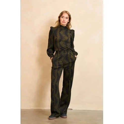 Deze Liv wide leg van Lofty Manner heeft een elastische tailleband. Het model is lang en gemaakt van polyester. Dit model heeft een print, zakken voor en sierzakken achter.