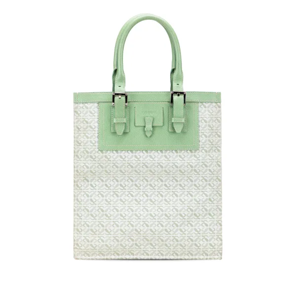 Pak, ga en til je dagelijkse stijl. Deze vintage Loewe tote bag biedt moeiteloze verfijning en praktisch nut. Het stijlvolle groene logo patroon, aangevuld met groene leren accenten, maakt een statement waar je ook gaat. Geniet van de duurzame, onderhoudsarme constructie, perfect voor dagelijkse avonturen. Het ruime ontwerp integreert naadloos in je drukke levensstijl en draagt al je essentials moeiteloos. Vlekken schoonmaken om het er op zijn best uit te laten zien. Afmetingen: 33,5 x 29,5 x 0,5 cm Conditiebeoordeling: B+ Informatie over de conditie: Achterkant van het exterieur bevlekt door kleuroverdracht van ander materiaal. Onderkant van het exterieur versleten. Hoeken van het exterieur versleten. Voorkant van het exterieur bevlekt door ander materiaal. Handgreep van het exterieur gevouwen en versleten. Handgreep van het exterieur bevlekt door kleuroverdracht van ander materiaal. Praktische bevestiging gekrast. Zijkant van het exterieur versleten. Bovenkant van het exterieur versleten. Ritssluiting gekrast.