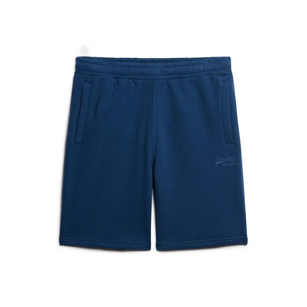Superdry Essential herenshorts in blauw katoen. Authentiek Superdry-kledingstuk - streetwear/sportkleding design van Superdry - Superdry voor heren, ideaal voor dagelijks gebruik - deze blauwe Superdry shorts passen perfect bij de rest van je garderobe - comfortabele katoenkwaliteit - klassiek - essential
