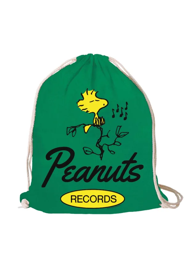 LOGOSHIRT Buideltas ‘Peanuts – Woodstock Records’ groen
