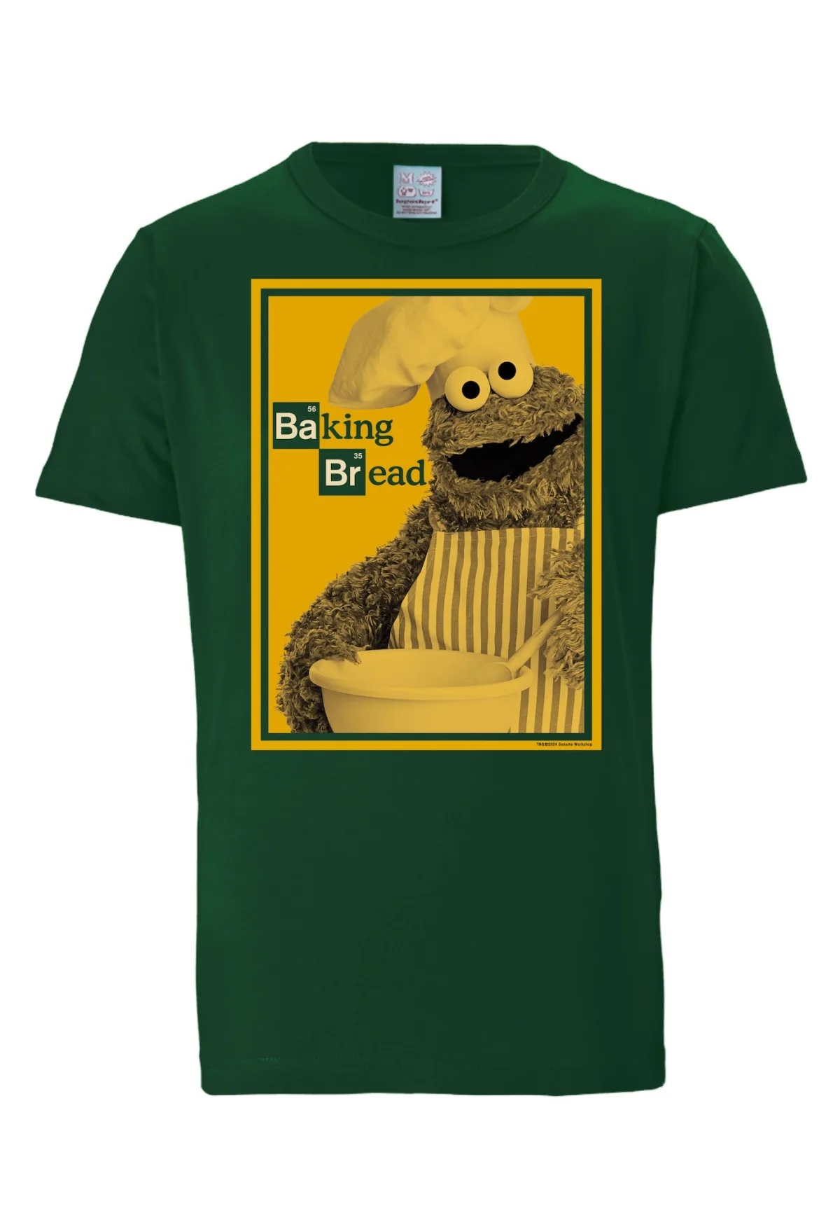 LOGOSHIRT Shirt 'Sesamstraße - Krümelmonster | Baking Bread' donkergroen