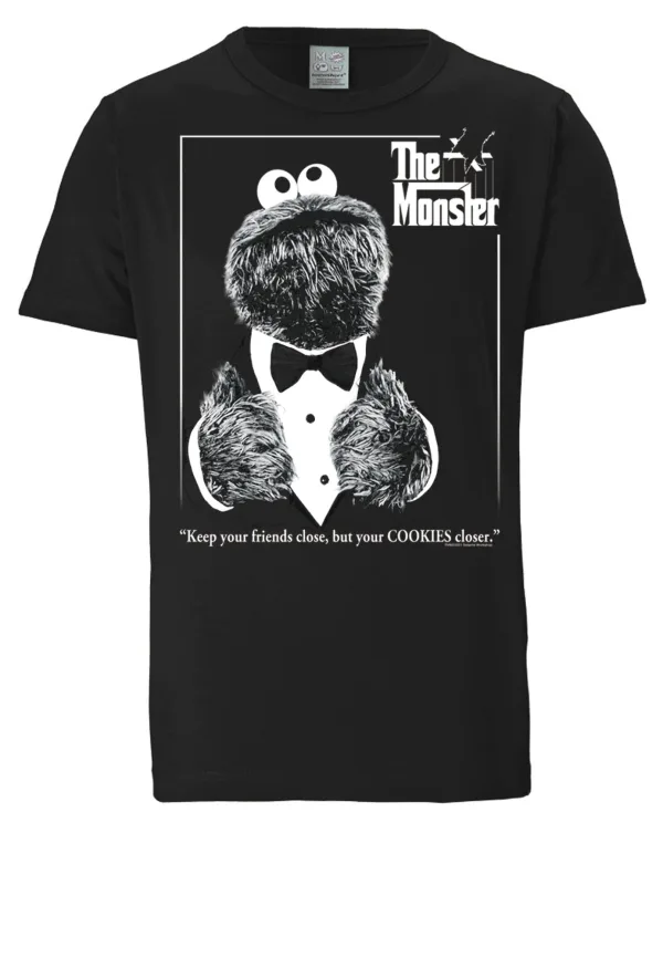 LOGOSHIRT Shirt ‘Sesamstrasse – Krümelmonster Pate’ zwart / wit Prijzen