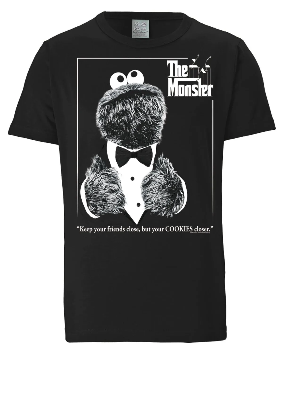 LOGOSHIRT Shirt 'Sesamstrasse - Krmelmonster Pate' zwart / wit