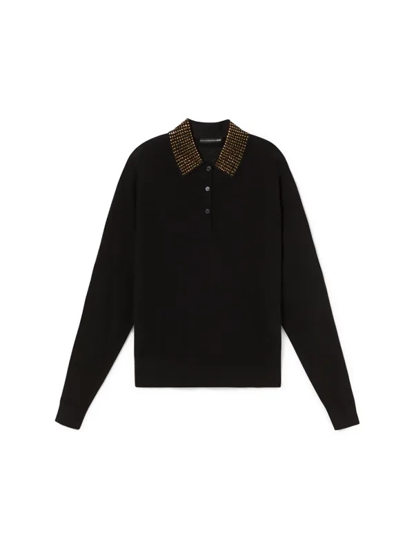 Design: Rechte zoom; Type sluiting: Knoopsluiting; Materiaal: Knitwear; Halstype: Polokraag; Motief: Effen; Details: Sierstenen; Extra's: Fully fashioned; Pasvorm: Normale pasvorm; Armlengte: Lange mouw; Lengte: Normale lengte