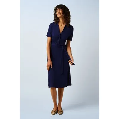 “Effortless elegance, the Lola way.” Lola Milano is prachtig om te zien en heeft een reverskraag, korte mouwen en een afneembaar striklintje waarmee je je taille mooi kunt accentueren. Ze is bovendien heerlijk om te dragen dankzij de soepele en luchtige EcoVero viscosemix in een prachtige beaconblauwe tint. * A-lijn * Reverskraag * Knopenrij * Korte mouwen * Afneembare strikband voor een extra ‘snatched’ taille * Reikt bij een lengte van 1,70 m over de knie