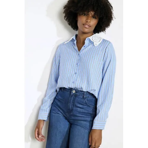 Deze LOLALIZA blouse heeft rechte mouwen en een klassieke kraag. De blouse is gemaakt van 100% katoen en heeft een knoopsluiting. Met kanten details geef je jouw outfit een frisse uitstraling.
