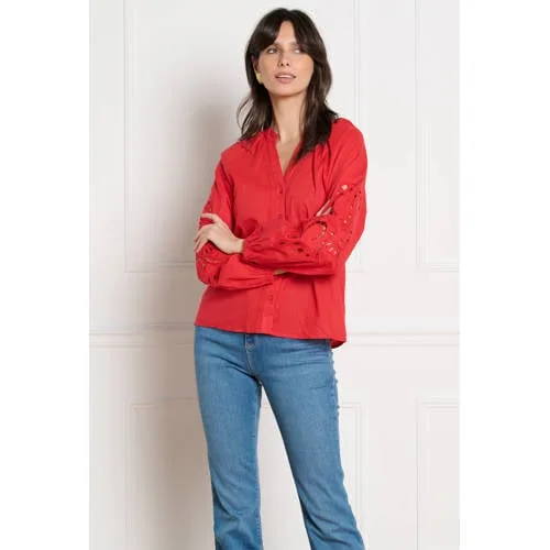 Deze LOLALIZA blouse met borduursel is een luchtig item met een subtiel opvallend karakter. De dieprode kleur geeft je outfit meteen warmte, terwijl de sierlijke broderie op de mouwen voor een verfijnd detail zorgt. Door de rechte mouwen en het losvallende model voelt de blouse comfortabel aan, ook op warmere dagen. De ronde hals en knoopsluiting aan de voorkant houden de uitstraling rustig en tijdloos, passend bij je dagelijkse garderobe.Details die het verschil maken Losvallend model dat soepel langs het lichaam valt Sierlijke broderie op de mouwen voor een verfijnd accent Model met lange mouwen en rechte mouwen Ronde hals voor een vrouwelijke, rustige halslijn Knoopsluiting aan de voorkant voor makkelijk aan- en uittrekken Gemaakt van 100% katoen, voelt zacht en luchtig aan op de huid Effen rode kleur, goed te combineren in je dagelijkse looks Wasbaar op 30 graden, prettig in het onderhoudGeschikt voor iedere dagDeze blouse komt uit de daily collectie en is geschikt voor alledaagse momenten. Combineer met een jeans voor een ontspannen dag of draag een nette broek eronder als je een verzorgde uitstraling wilt. De katoenen stof maakt de blouse prettig om te dragen tijdens de zomer, op kantoor of tijdens een lunchafspraak.De stijl van LOLALIZALOLALIZA ontwerpt mode die prettig draagt en goed in het dagelijks leven past. De items combineren vrouwelijke details met comfortabele pasvormen, zodat je je vrij kunt bewegen en er verzorgd uitziet. Met deze blouse kies je voor een kledingstuk dat eenvoudig in je bestaande garderobe aansluit.Een rode blouse met borduursels die je dagelijkse outfits een rustig en verzorgd accent geeft.